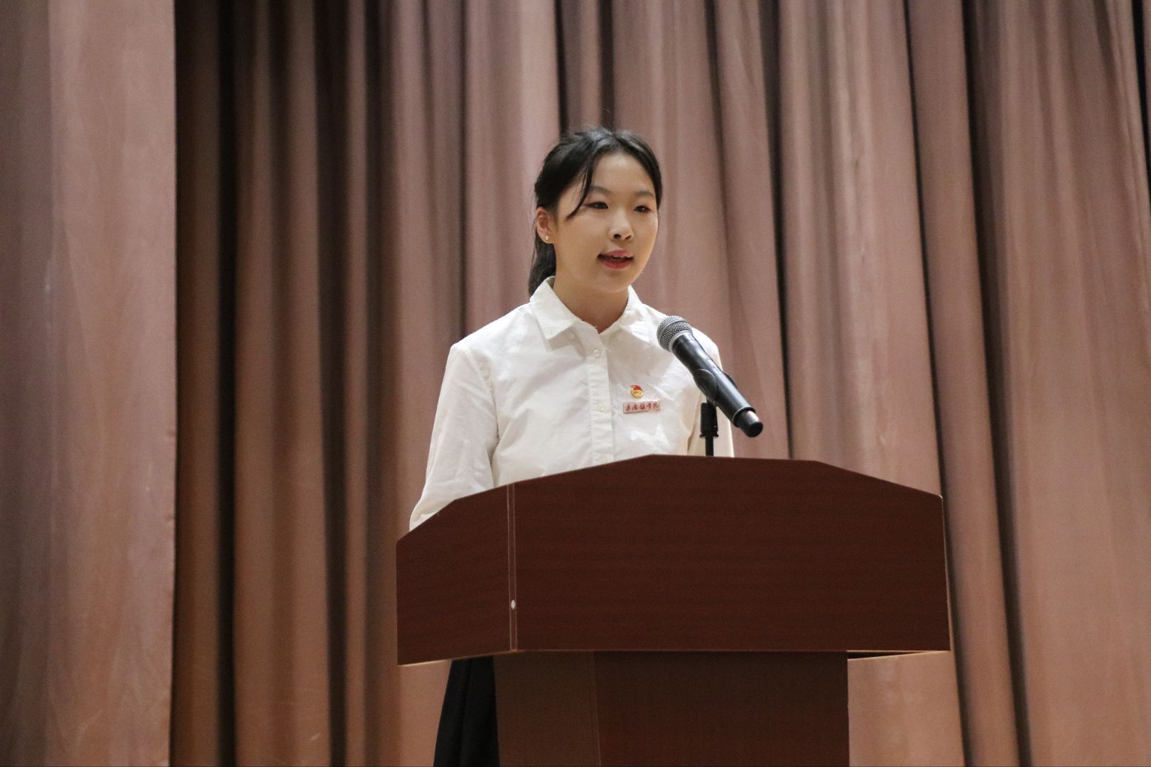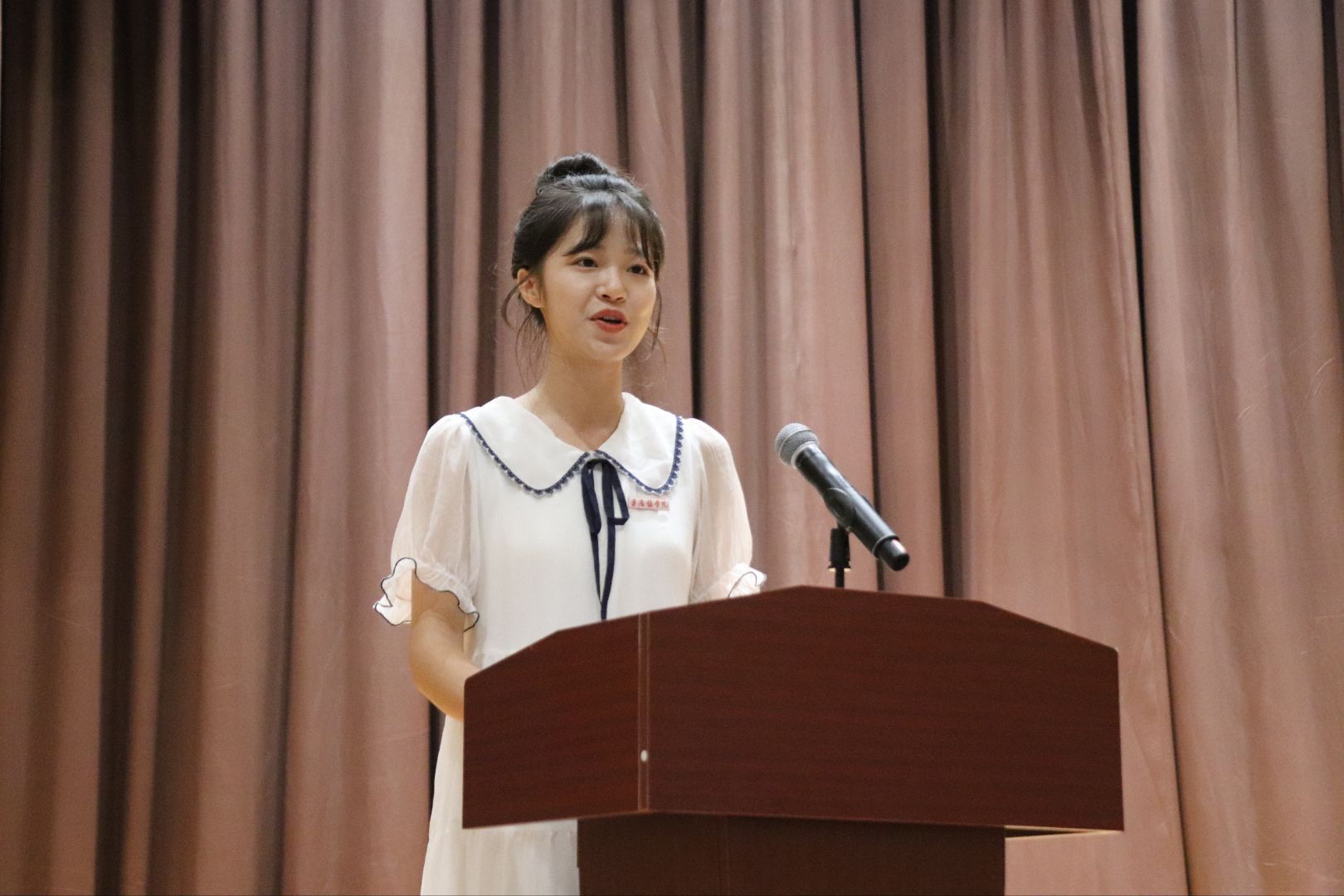 典礼在庄严的国歌声中拉开帷幕,全体人员起立,满怀赤诚地奏唱国歌,现场气氛庄严肃穆。随后,院领导为新生代表佩戴校徽,小小的校徽承载着学院对新生的期许,也标志着新生们正式成为经济管理学院大家庭的一员。