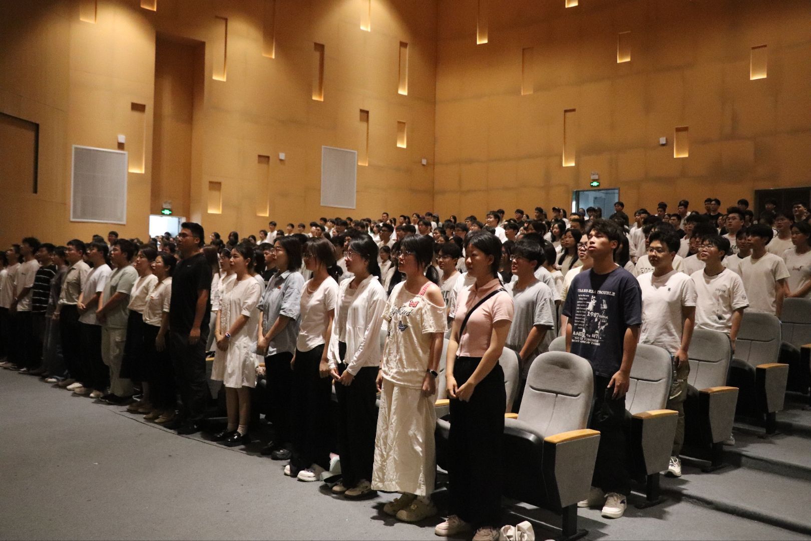 典礼在激昂的校歌声中落下帷幕,全体人员起立,共同唱响校歌,歌声中满是对新生的祝福和对学院未来的期许。