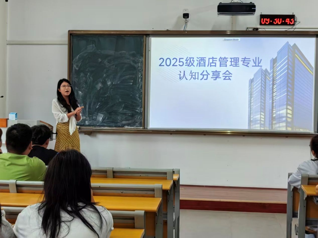 分享会在轻松热烈的氛围中拉开帷幕。酒店管理专业资深教师刘瑜辉首先致辞,对到场嘉宾表示热烈欢迎,并强调了在当前旅游业快速复苏与消费升级的背景下,酒店管理专业所迎来的巨大机遇与挑战,鼓励同学们夯实专业基础,拓宽国际视野,成为行业未来的中坚力量。