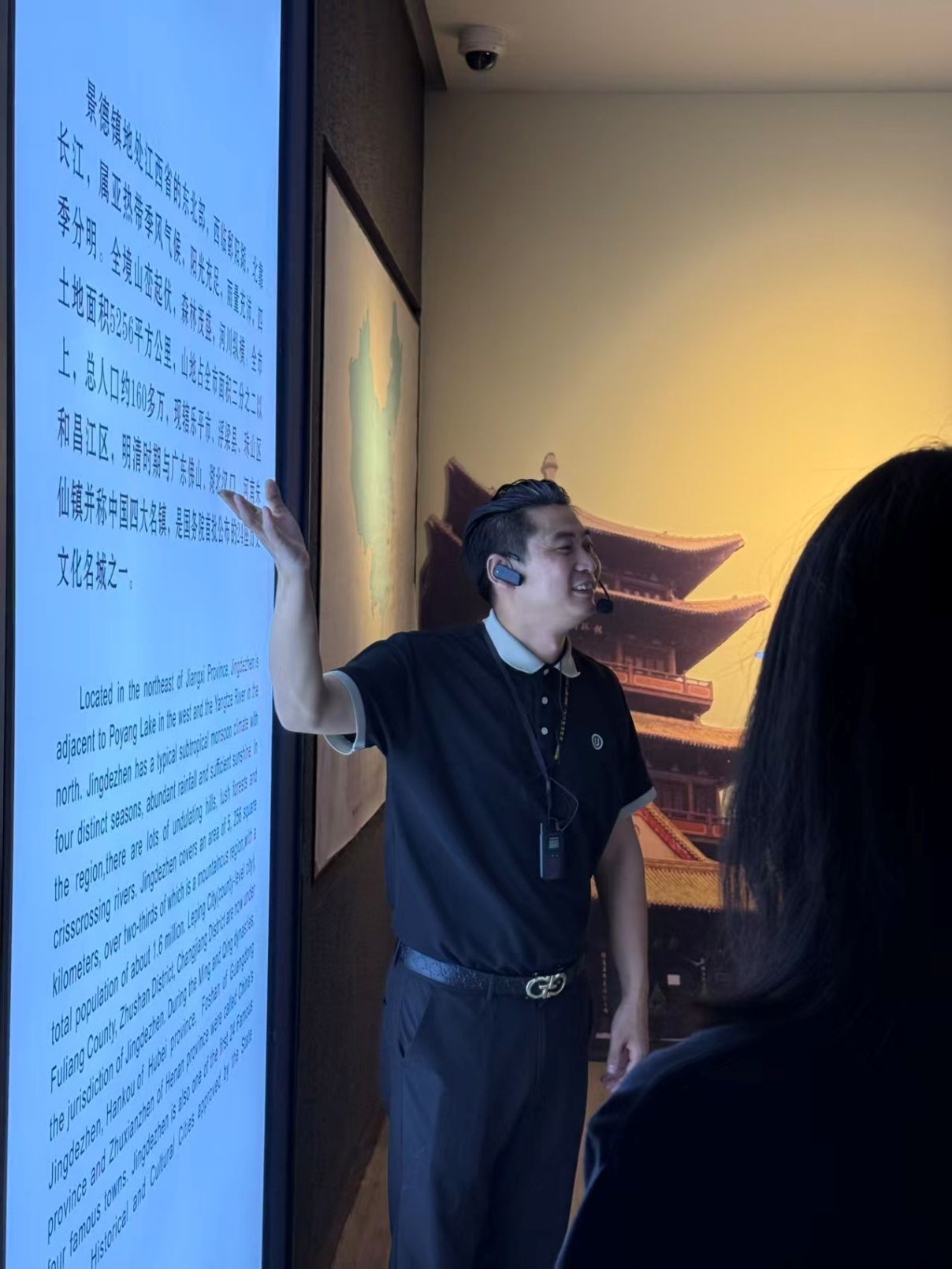 在肖贵仁的专业讲解中,同学们不仅领略了千年瓷都的艺术瑰宝,更从酒店管理的专业视角出发,思考了高端服务、文化体验与客户需求之间的内在联系。于瑶老师在现场指出:“一流的酒店服务,其核心与博物馆的接待讲解有异曲同工之妙,都在于对文化的理解、对细节的把握和对体验的营造。” 这次参观将课堂知识置于广阔的文化背景下,使同学们对“服务”的内涵有了更深刻的理解。