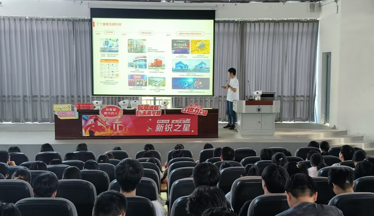 京东物流华中、华东区校招负责人栾经理作为主讲人,围绕企业核心储备人才培养项目展开详细介绍。他提到,企业针对应届毕业生打造了专属储备人才项目,也就是“新锐之星”计划,旨在通过“导师带教+轮岗实践+专项培训”的模式,帮助毕业生快速适应职场环境,成长为物流运营、供应链管理、职能支持等领域的骨干力量。