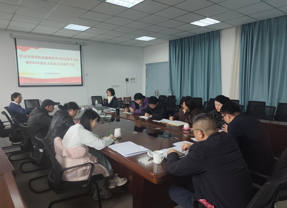 (图/文岑晴玲)2月28日上午,经济管理学院在会议室召开党委理论学习中心组学习会暨民主生活会会前集中学习会,院党委书记程树武主持并讲话。党委理论学习中心组全体成员参加会议。