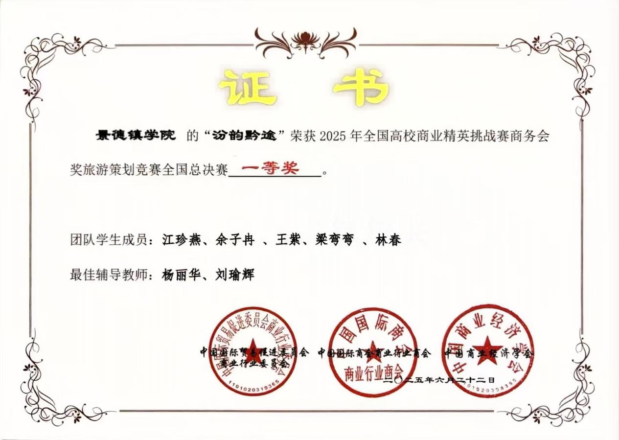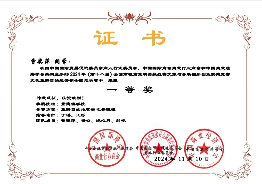 2025年5月,荣获全国高校商业精英挑战赛品牌策划竞赛全国总决赛一等奖;