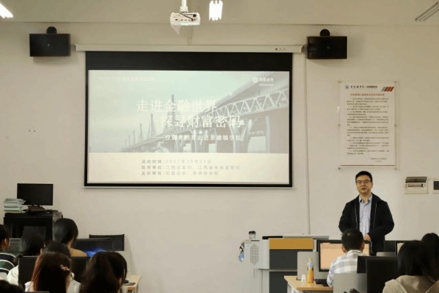 徐震老师对学生们的到来表示热烈欢迎,为使同学们能够取得更好的学习效果,讲解人员结合金融专业前沿议题介绍了投资者在投资上应注意的问题,并且对投资的方法、理财存在的误区等多方面进行了生动详细的讲解。同时,提醒广大同学要不断增强辨识能力,提升风险防范意识,理性投资合理消费。在互动环节中,同学们踊跃发表自己对理财投资的理解和疑问,现场气氛活跃。