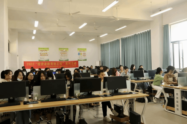 (本网讯:程建鑫)为增强学生金融安全意识,提高风险防范和理财能力,经济管理学院于10月23日在经管楼三楼沙盘模拟实验室开展“企业入校园”校企合作活动。国盛证券组织学生进行金融技能实践实训。