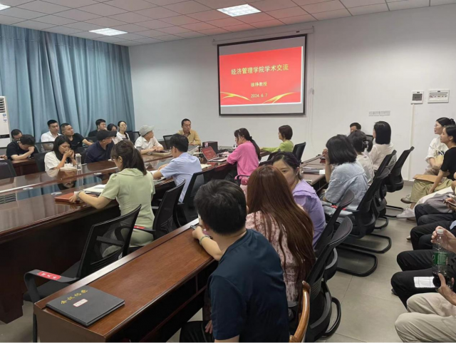 (本网讯:韩旭)6月7日下午,经济管理学院在经管楼会议室举办了教学学术交流活动,主要围绕财务管理专业的学术交流和教学经验来展开。本次讲座邀请了徐琤教授为主讲,学院全体教师参加。