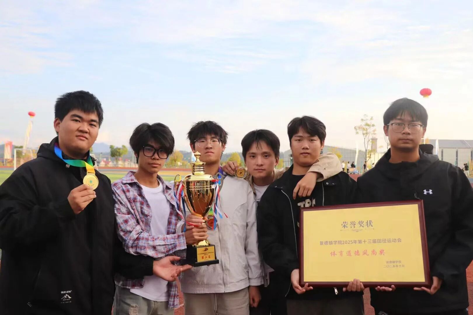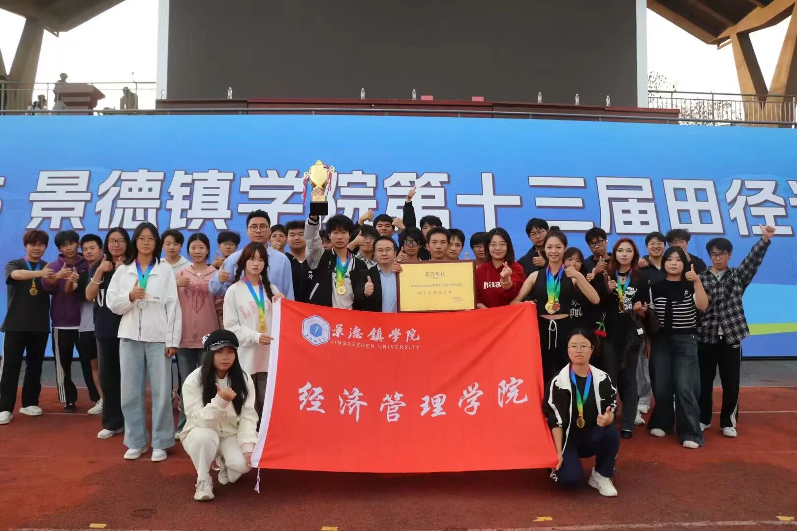 (本网讯:肖玉婷)秋阳似火,赛场传捷。在刚刚圆满落幕的我校第十三届秋季运动会上,经济管理学院团结一心、奋勇拼搏,最终荣获学院团体总分第二名的成绩,并被授予“体育道德风尚奖”的荣誉称号。尤为闪耀的是,郭远豪同学在男子1500米与800米比赛中双双打破校纪录,凭借绝对实力成为本届赛事中最耀眼的明星之一,充分展现了经管学子昂扬的斗志与卓越的风采!