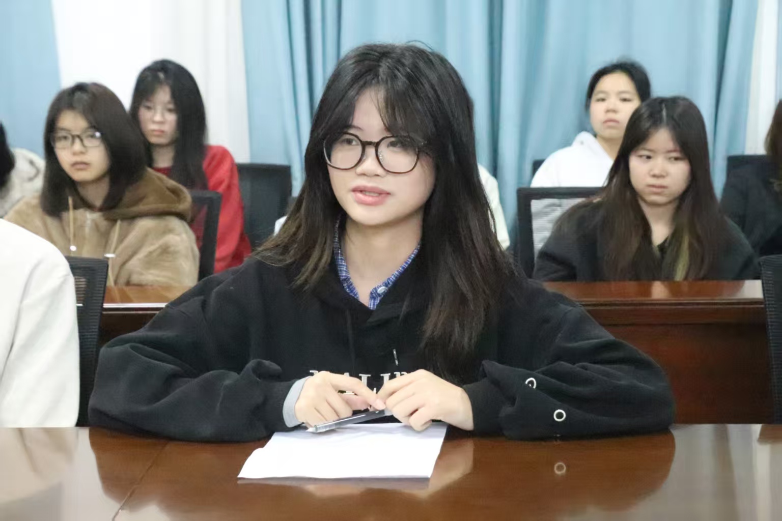 活动在轻松融洽的氛围中进行,同学们认真聆听、主动思考,充分展现出对自身成长与未来发展的高度关注。互动交流环节中,同学们结合自身学习生活实际踊跃提问,问题聚焦课程安排与自主学习、实习备考的时间平衡、教学实践与专业适配、后勤生活服务优化、职业规划与发展方向等与学生息息相关的现实问题,直击学业与成长发展的关键困惑。