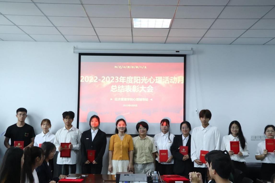 (本网讯:韩舒琪)为了普及心理健康知识,增强大学生的自我调节能力,提高学生的心理健康水平和综合素质,经济管理学院于6月8日在经管楼举办“阳光心理活动月”总结表彰大会。院党委书记王振华、院党委委员候灵云、全体辅导员和全体心素会成员参加会议。会议由辅导员方美林主持。
