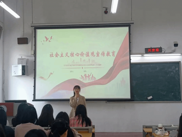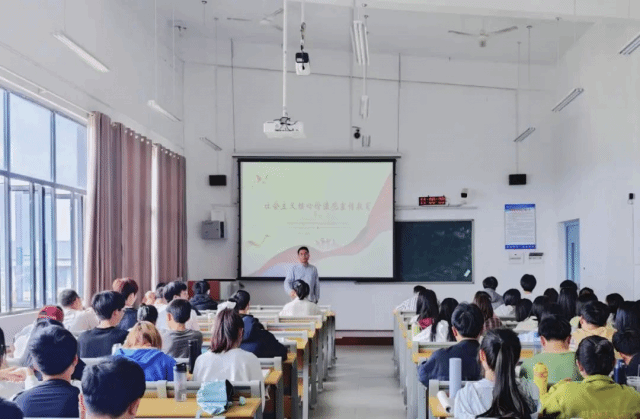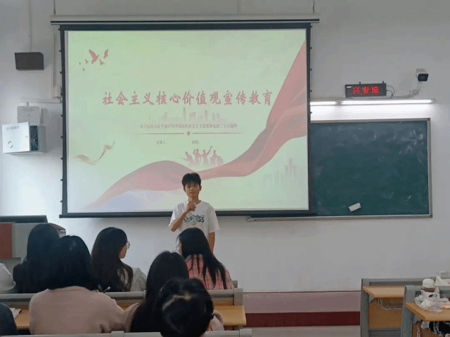 程鑫尧老师紧紧围绕社会主义核心价值观,从“社会主义核心价值观的基本内容”、“深刻理解社会主义核心价值观的丰富内涵和重要意义”、“青年如何践行社会主义核心价值观”三个方面带领学生深入学习社会主义核心价值观的丰富内涵和重要意义,引导学生正确认识理解社会主义核心价值观。