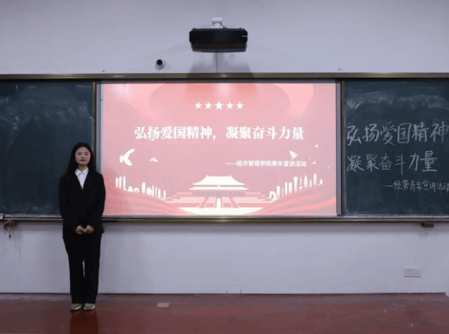 (本网讯|文:林宇润/图:林宇润陈伟杰)为使经管学子深刻学习领会社会主义核心价值观,深刻认识“两个确立”的决定性意义,深入学习贯彻习近平新时代中国特色社会主义思想主题教育,5月12日,经济管理学院于3101教室举办以“弘扬爱国精神,凝聚奋进力量”为主题青年宣讲活动。本次活动由22酒管一班谢文慧主持。